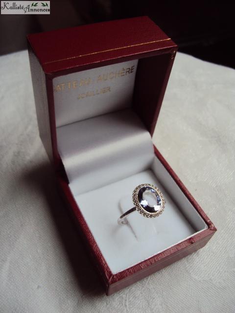1 de 2,94g, en iolite (pierre précieuse rare), or gris 18 carats et diamants. Prix d'achat = 1420e au lieu de 1990e