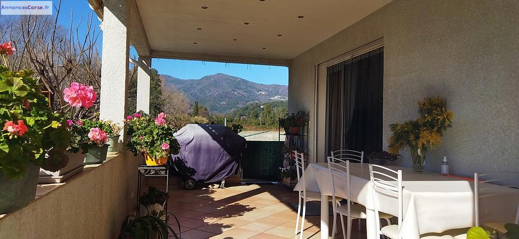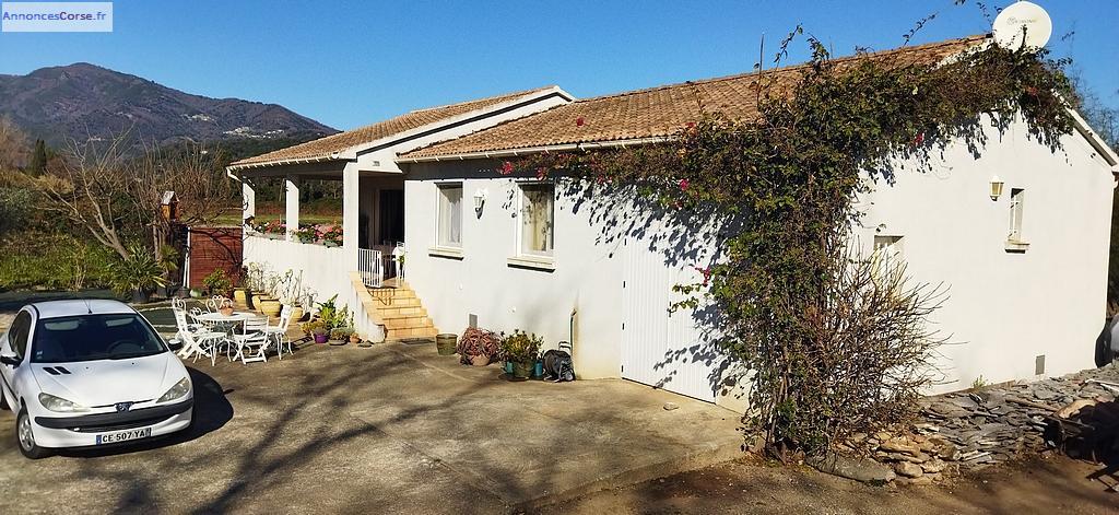 Cette propriété proche de la mer et des commerces à pied, est située en plaine de Santa Lucia di Moriani, avec vue sur la montagne, sans vis à vis.